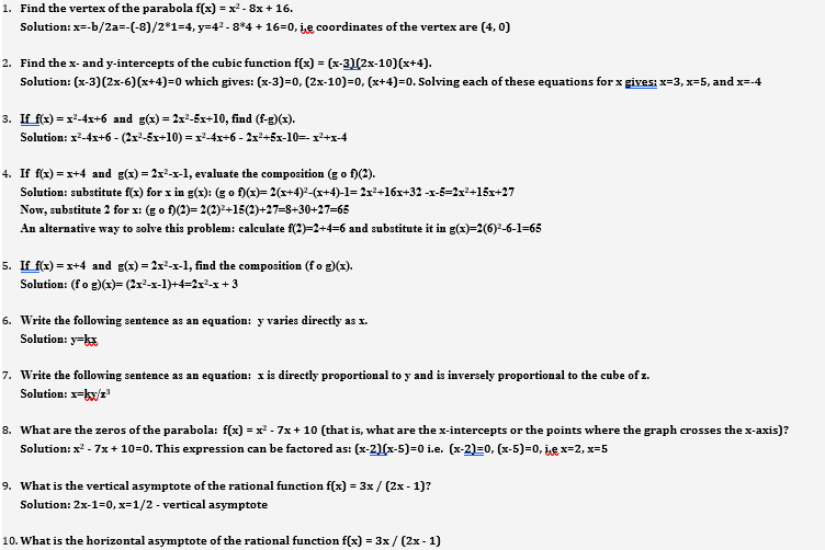 Determine if the following functions are inverses of each other: f(x) = 7x + 14 g(x) = (1/7)x - 2 Solution: Find composite (fog)(x)= 7((1/7)x - 2) + 14=x-14+14=x - yes these functions are inverse