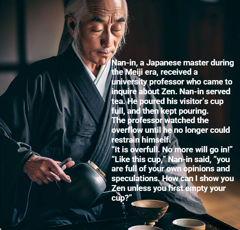 Hopefully, this story helped you to get in the right mind set. Now, take a moment—Do you realize that you have a cup? Do you recognize it? Do you notice if your cup is full? Is it filled with opinions, assumptions (preconceptions), and speculations about a potential or an existing career in teaching? Will these hinder or help you on your journey to discovering the great teacher within? Can you find a way to analyze and evaluate them? Have you asked yourself what effective2 teaching looks like? Can you observe it? What does great teaching imply? What does it take to be a great teacher? Most important, will you enjoy it? What were some of your answers to these starter questions? Your answers will determine the starting point of your journey. Accordingly, each reader sets their own relative starting place. Go here to learn more if you want to know more about the sage. |