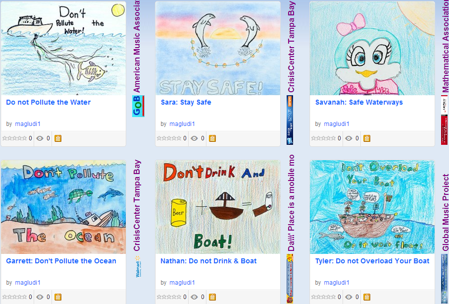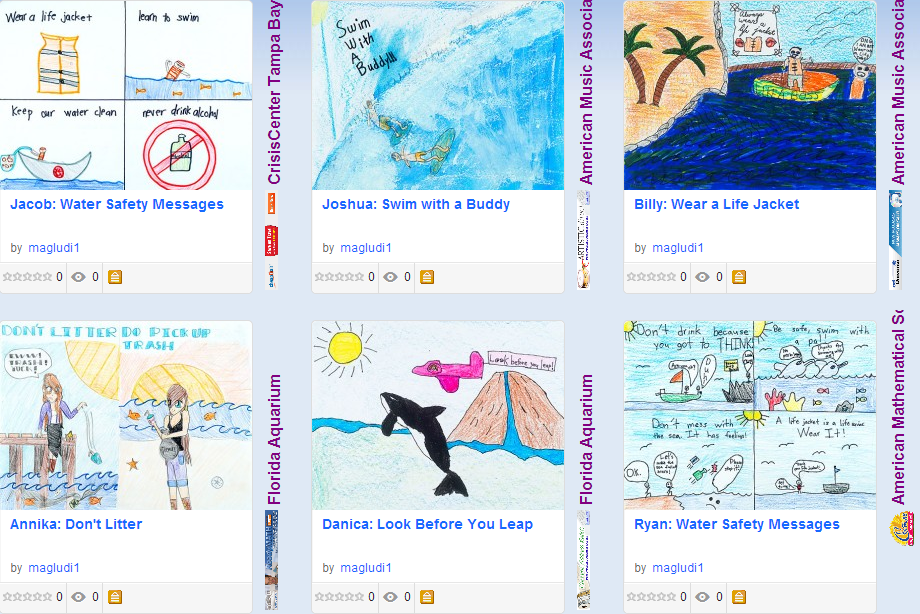 Some examples of posts from a Creative Learning of Safe Swimming gallery developed in 2014 in collaboration with the Florida Department of Family Services. It had excellent posters created by students and a great collection of important resources to prevent drowning. This multi-level gallery had sub-galleries organized by the students' grade, project, etc.